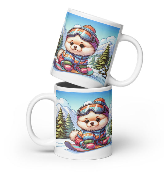 Winterse Pomeranian Snowboard Mok - Begin Je Dag Met Sneeuwpret